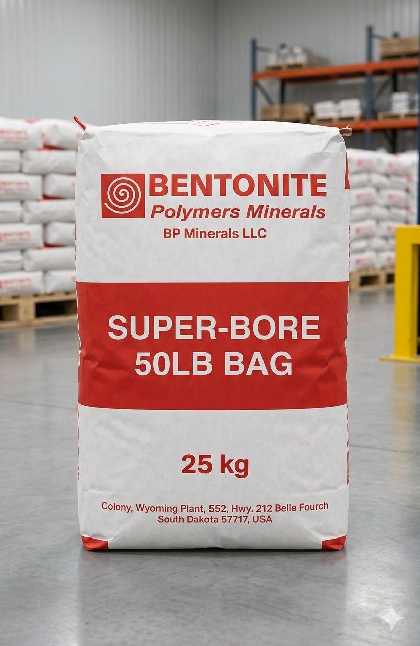 Бентонит Super-Bore 50LB BAG (Супер-Бор 50ЛБ Бэг) - Классическая базовая система для горизонтально-направленного бурения на основе американского вайомингского бентонита. Предназначен для любых типов грунтов. Используется как основа многокомпонентного бентонито-полимерного раствора. Совместим со всеми типами полимеров.